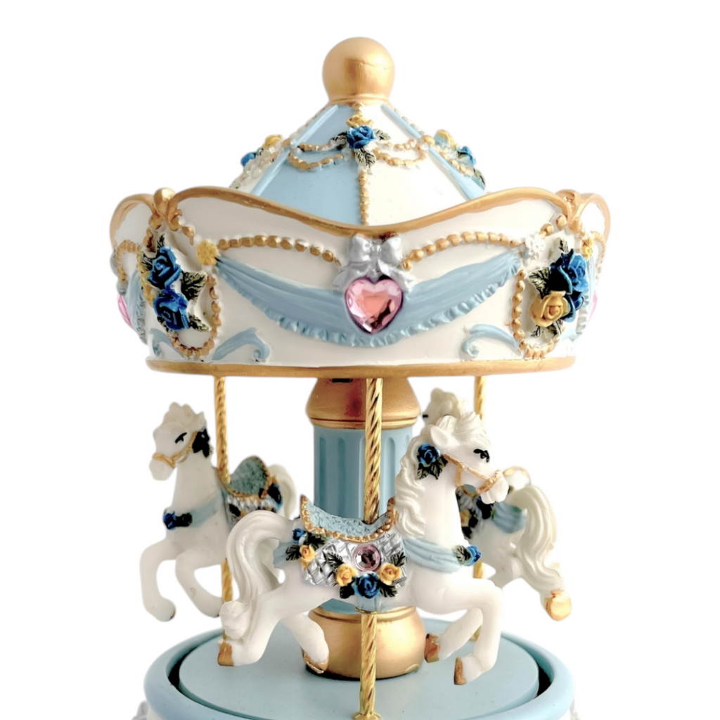 Experience the magic of this Blue Horse Carousel Merry Go Round!