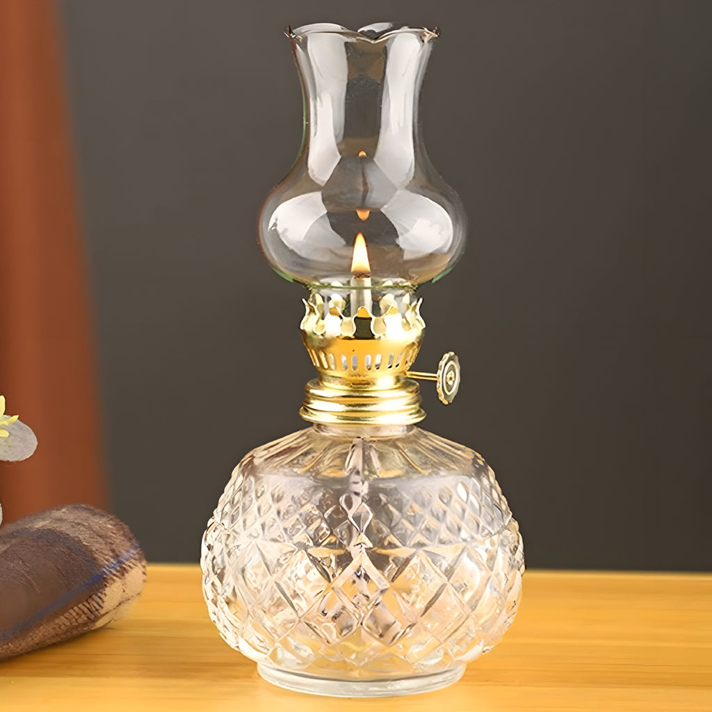 Oil lamp great for creating everyday ambiance, A household necessity in a power outage.