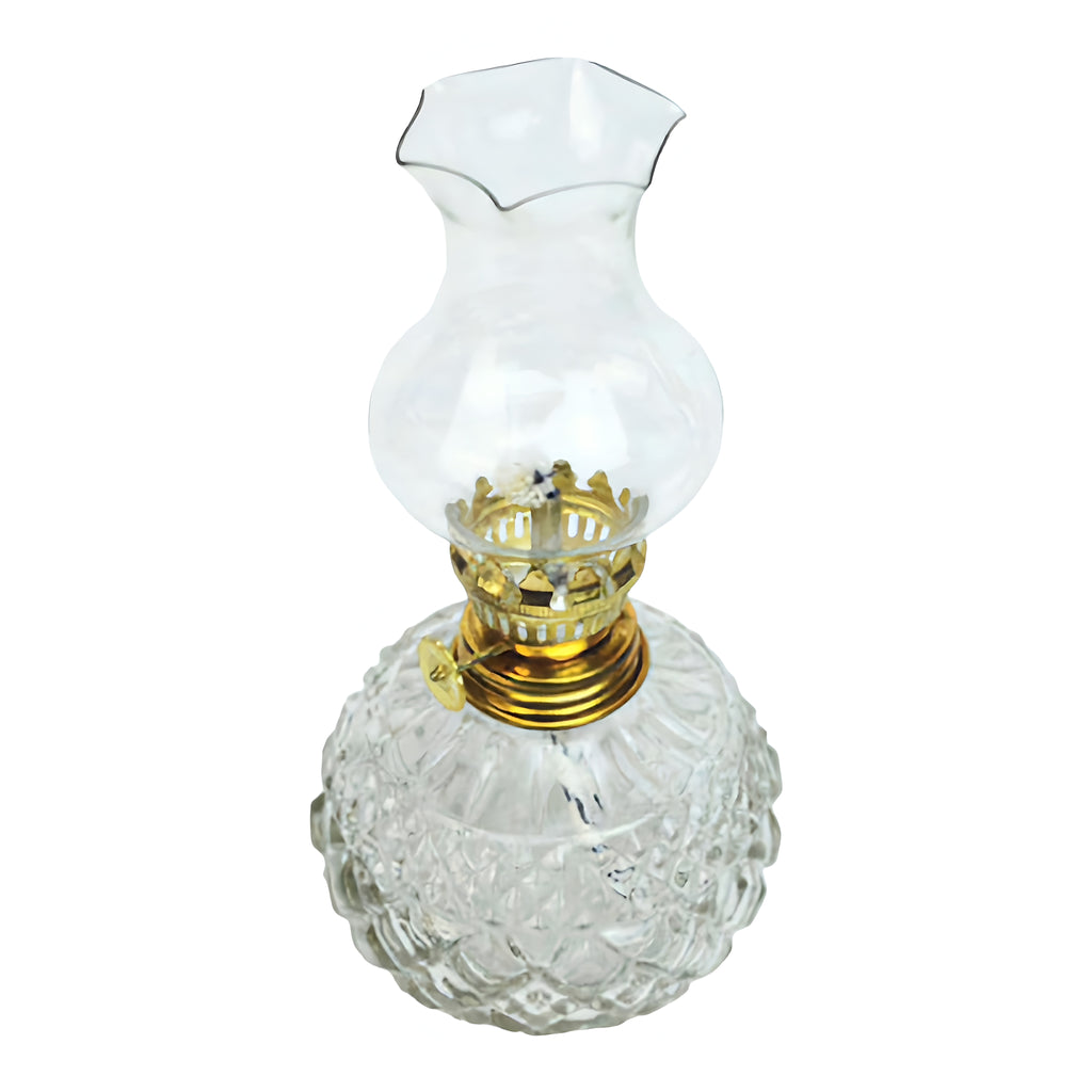 Clear Crystal Cut Glass Vintage Kerosene Oil Lamp Lantern