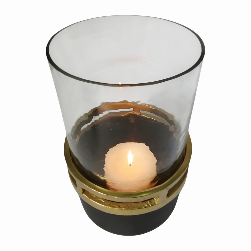 Black And Antique Gold Glass Hurricane Candle Holder