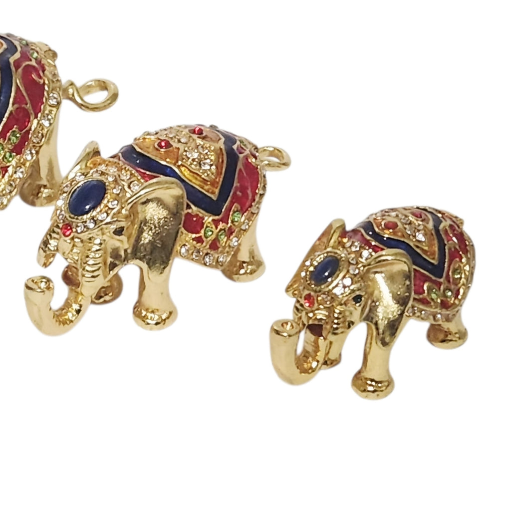 Set 3 Gold & Red Family of Elephants Jewelled Enamel Trinket Box Figurines