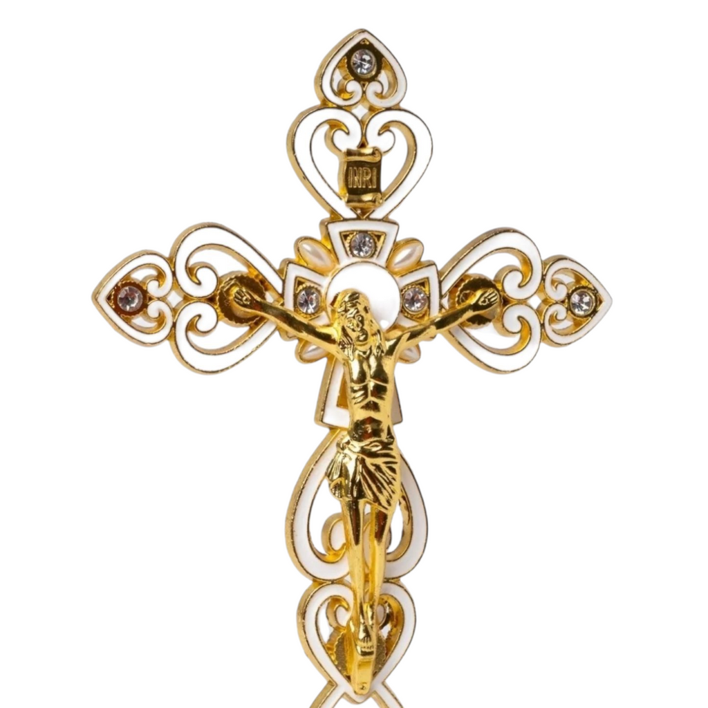 White & Gold Chrome Plated Standing Religious Crucifix Cross