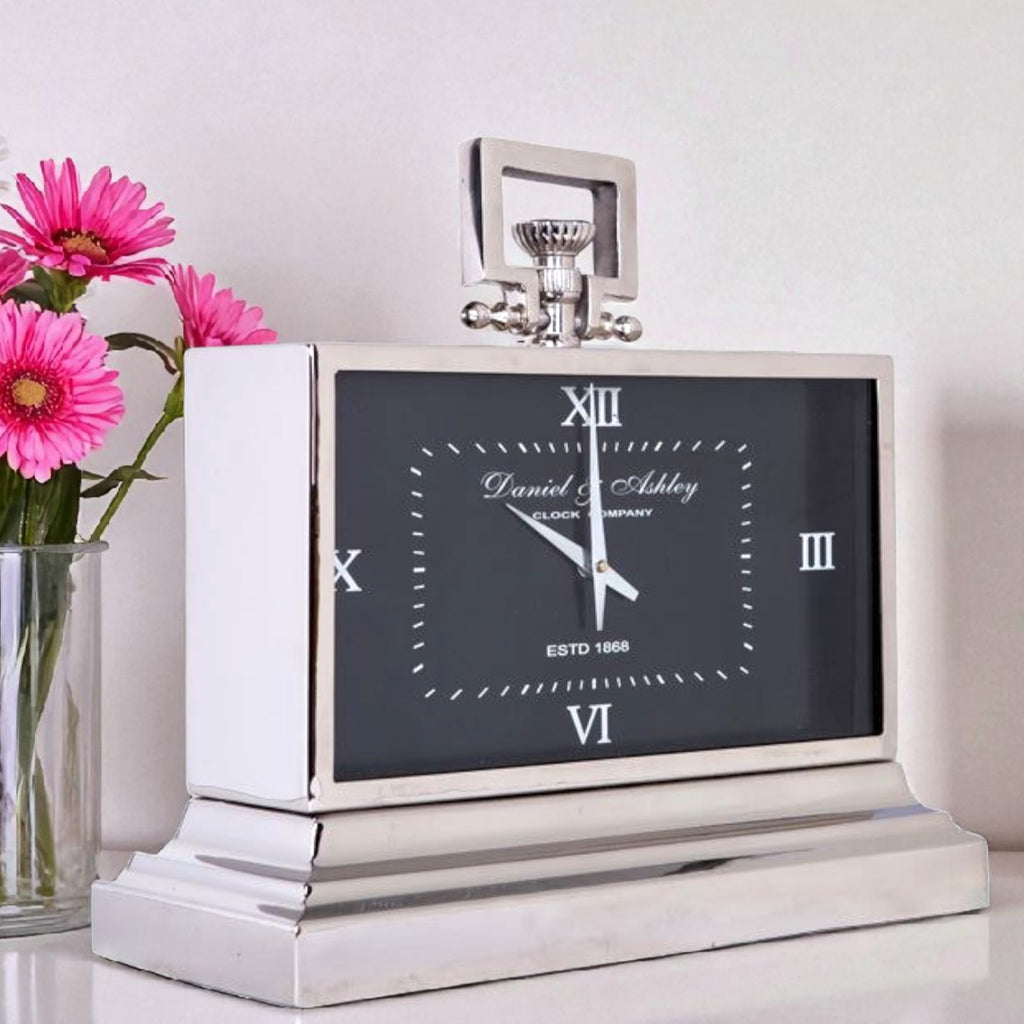 Large Silver Nickel Plated Black Face Daniel & Ashley Mantel Clock