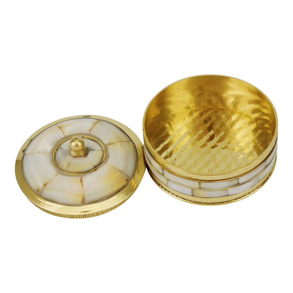 Louve Blanc Mother of Pearl Gold Round Decorative Tabletop Box