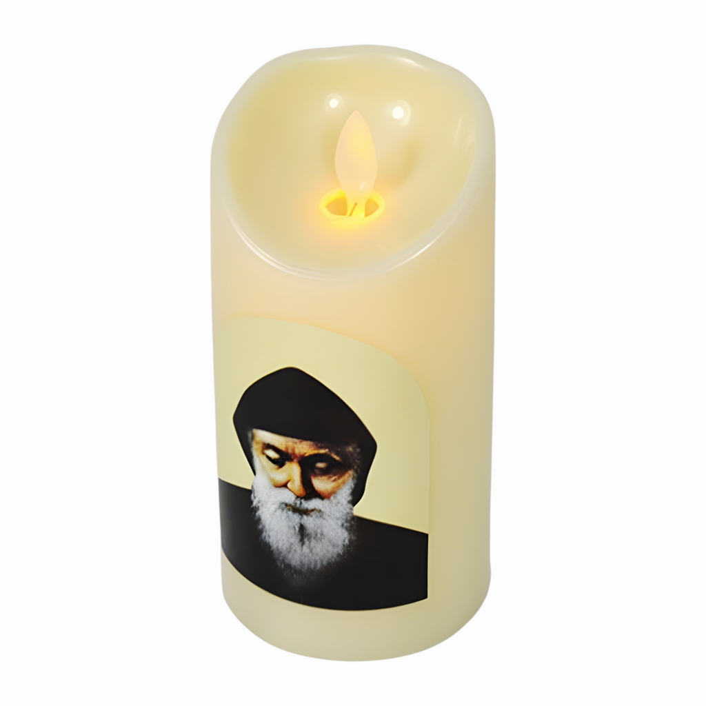 Catholic Saint Charbel LED Light Up Flameless Pillar Swing Candle