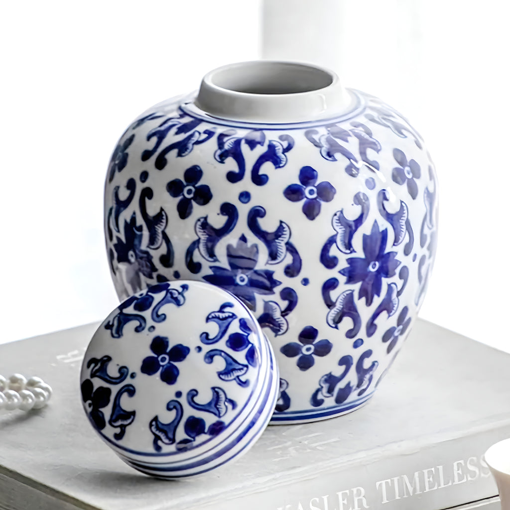 Hamptons Blue & White Floral Ceramic Decorative Ginger Temple Jar