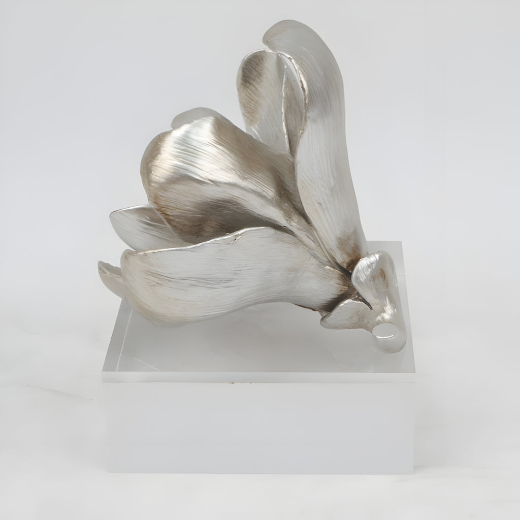 Silver Magnolia Resin Flower On Acrylic Base Decorative Tabletop Ornament