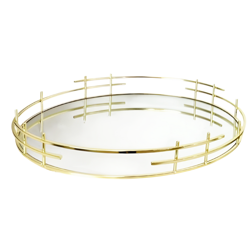 Set 2 Gold Plated Round Decorative Deluxe Mirror Trays