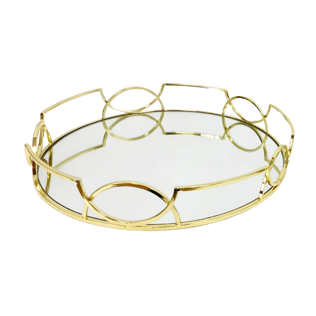 Set 2 Gold Plated Round Decorative Deluxe Mirror Trays