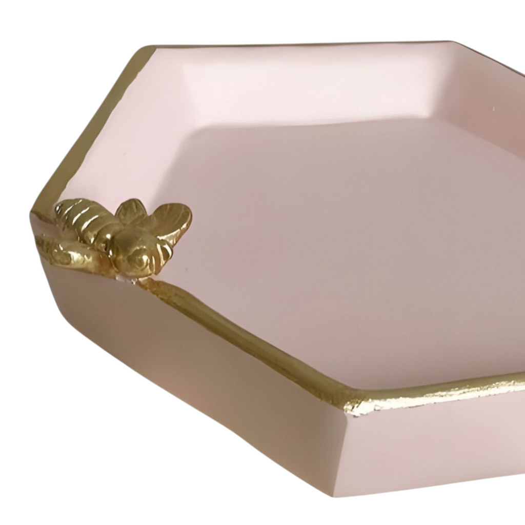 Petal Pink Hexagon Decorative Resin Tray & Gold Bee
