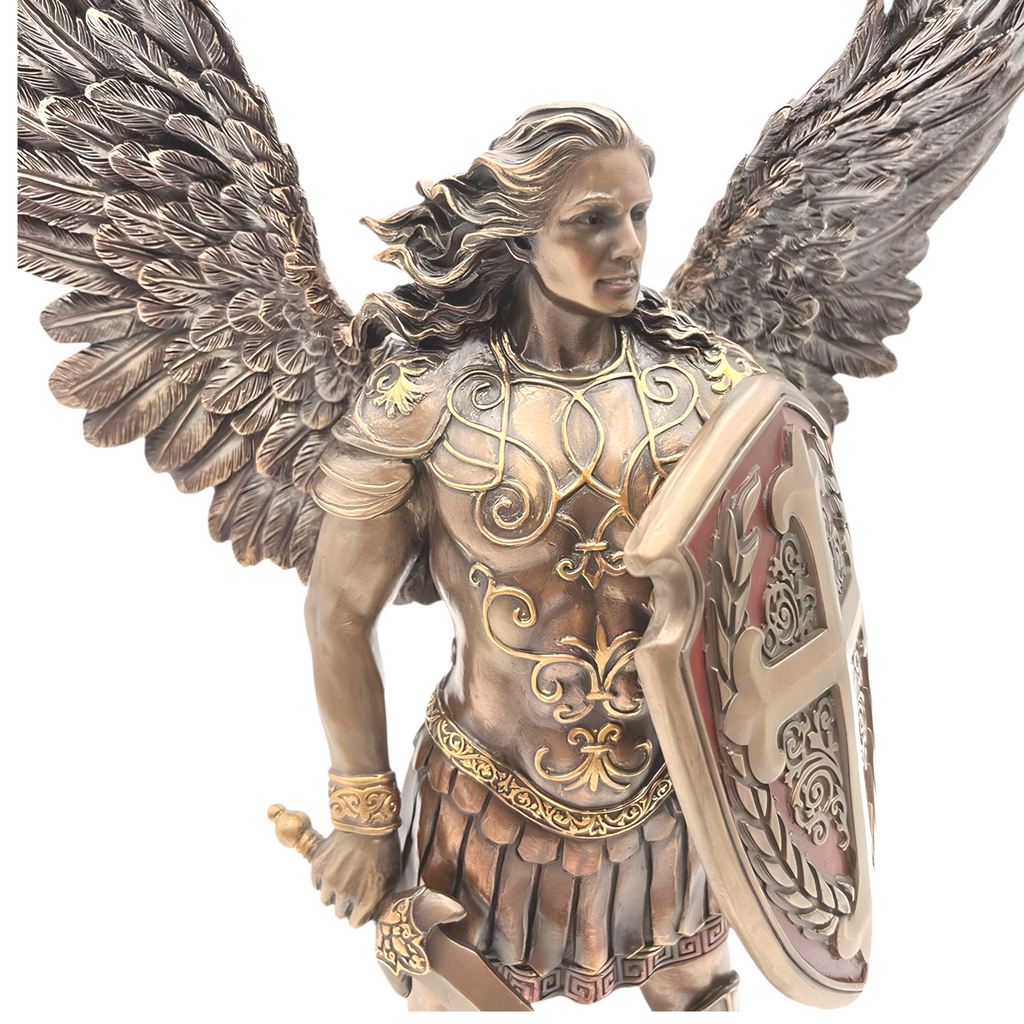 Veronese Cold Cast Bronze Archangel Michael Holding Sword & Shield Statue Figurine