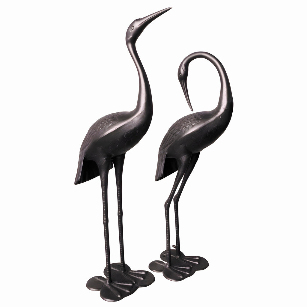 Set of 2 Assorted Antique Bronze Niles & Frasier Crane Couple Garden Statues
