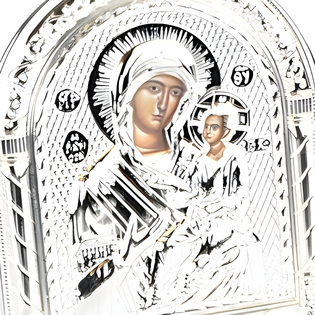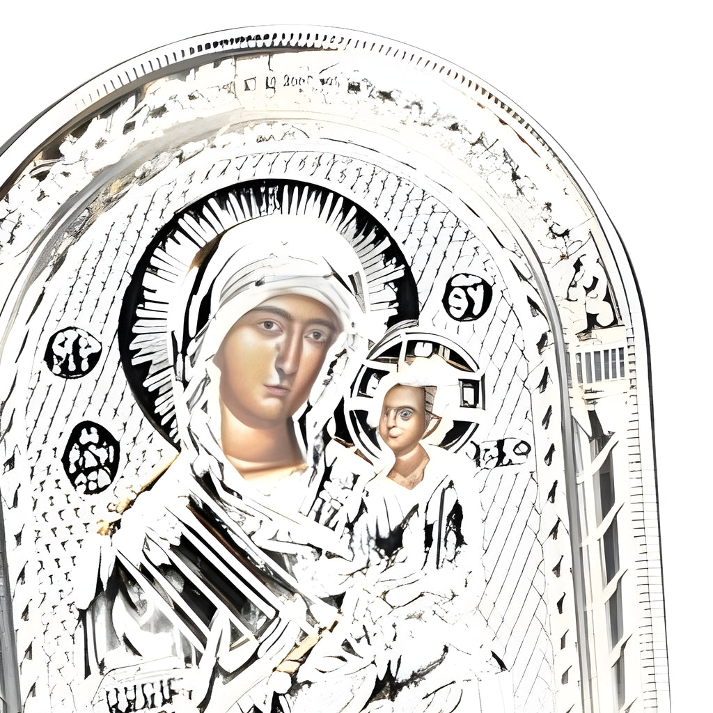 This Orthodox Icon Plaque features a stunning Silver Plated design of the Holy Mother Mary & Jesus.