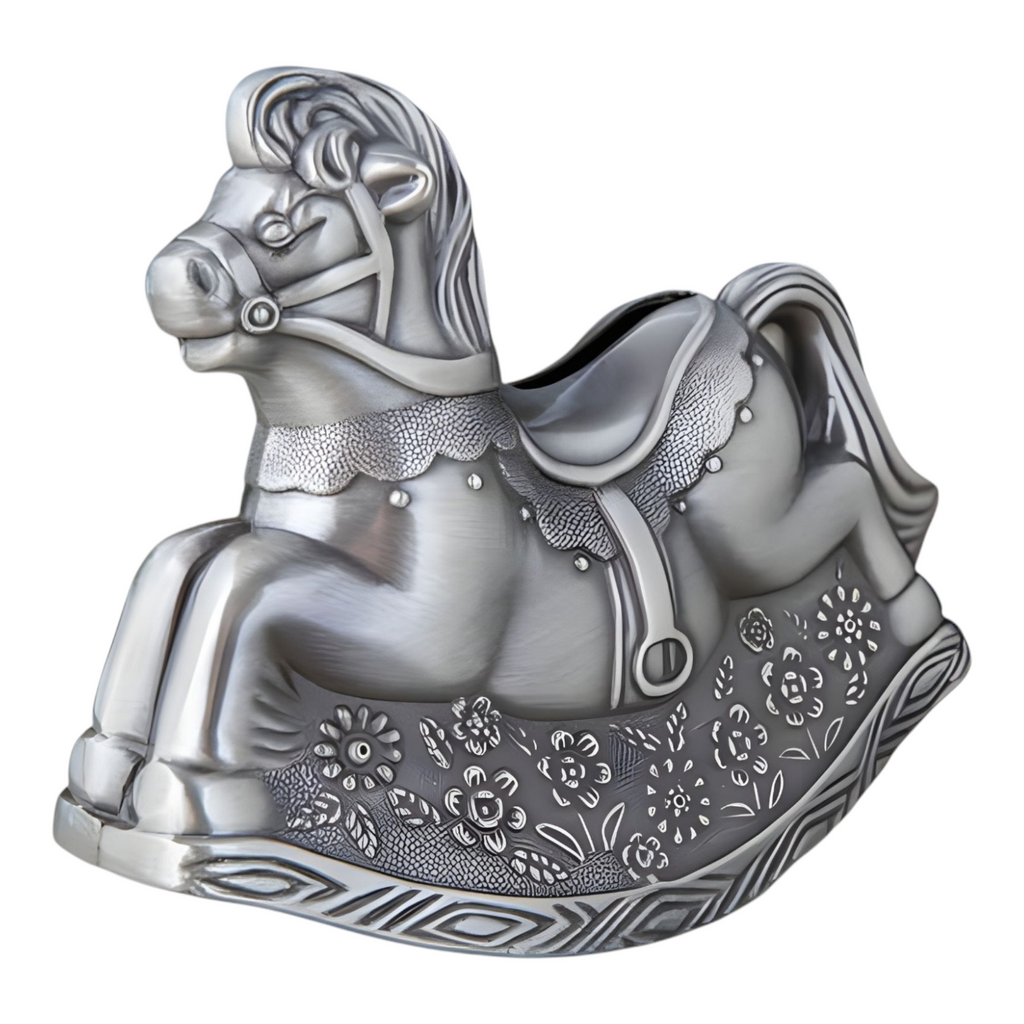 This beautiful Silver Pewter Rocking Horse Money Box is the perfect gift for children to start saving money.