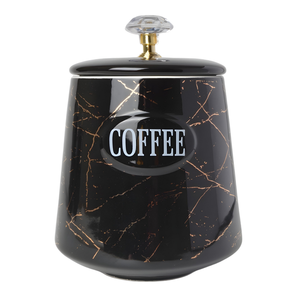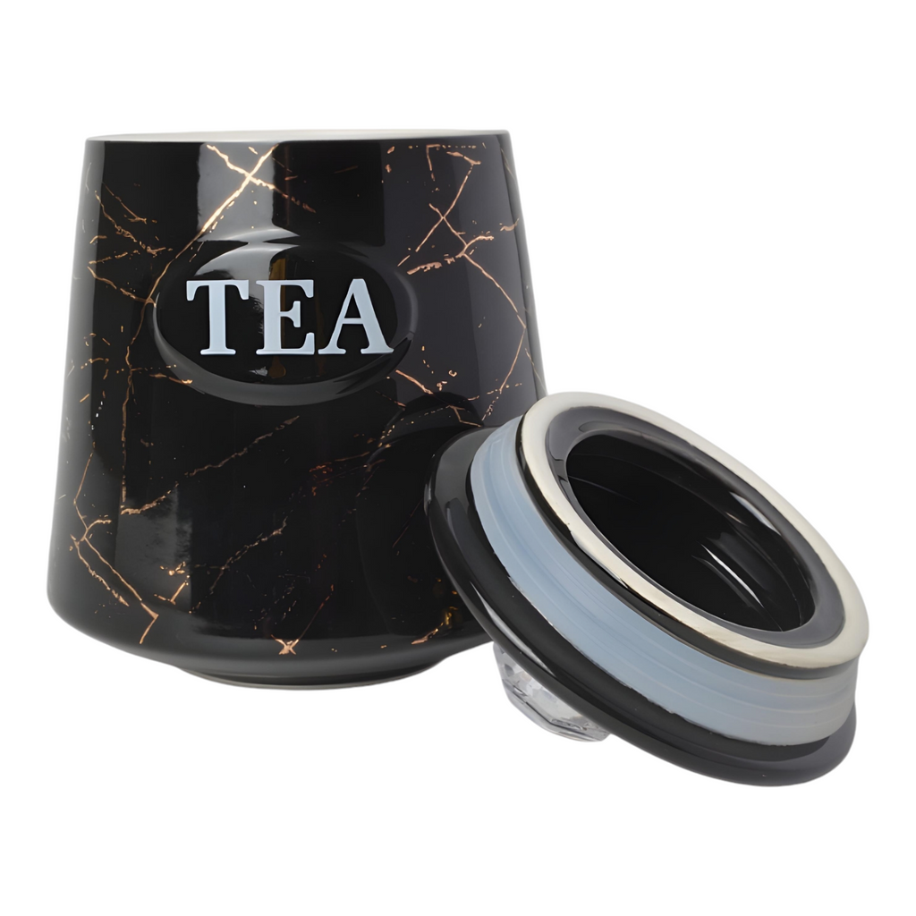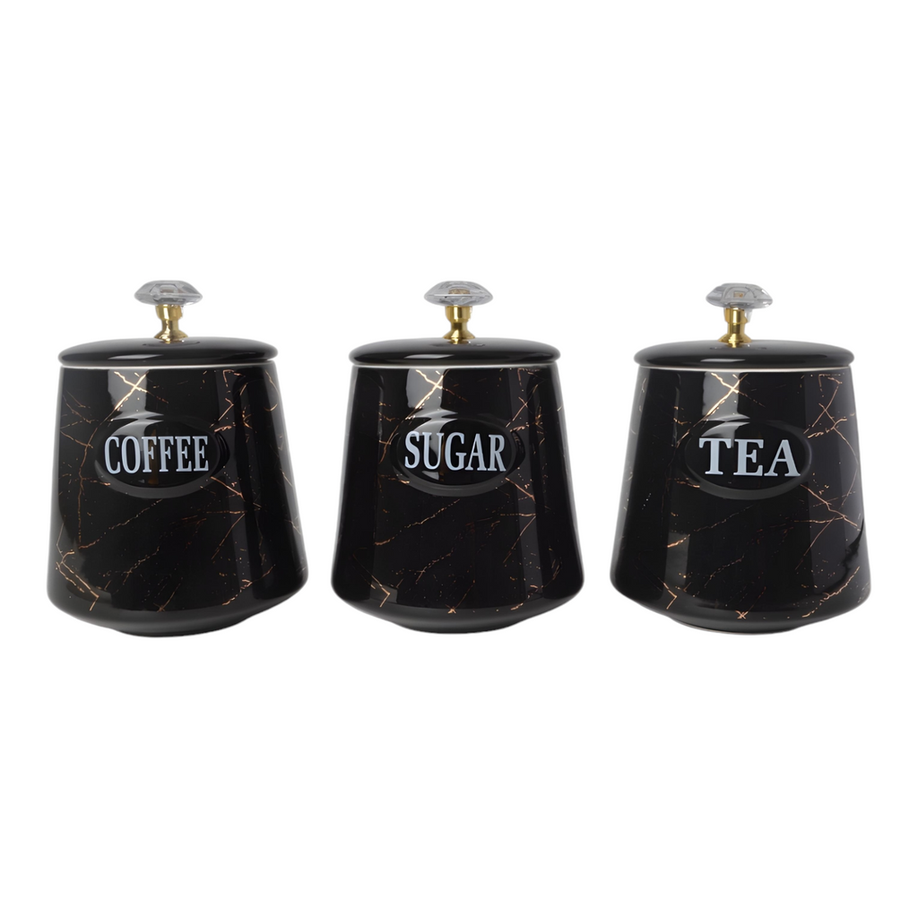 Set 3 Black & Gold Marble Design Ceramic Kitchen Canisters- Coffee Tea Sugar