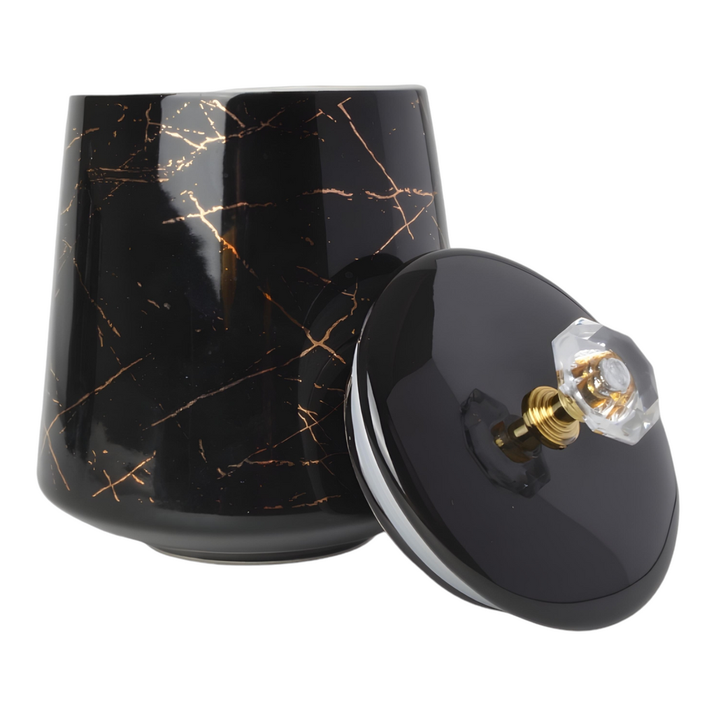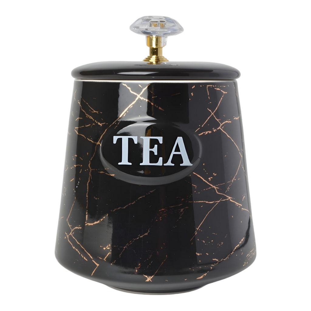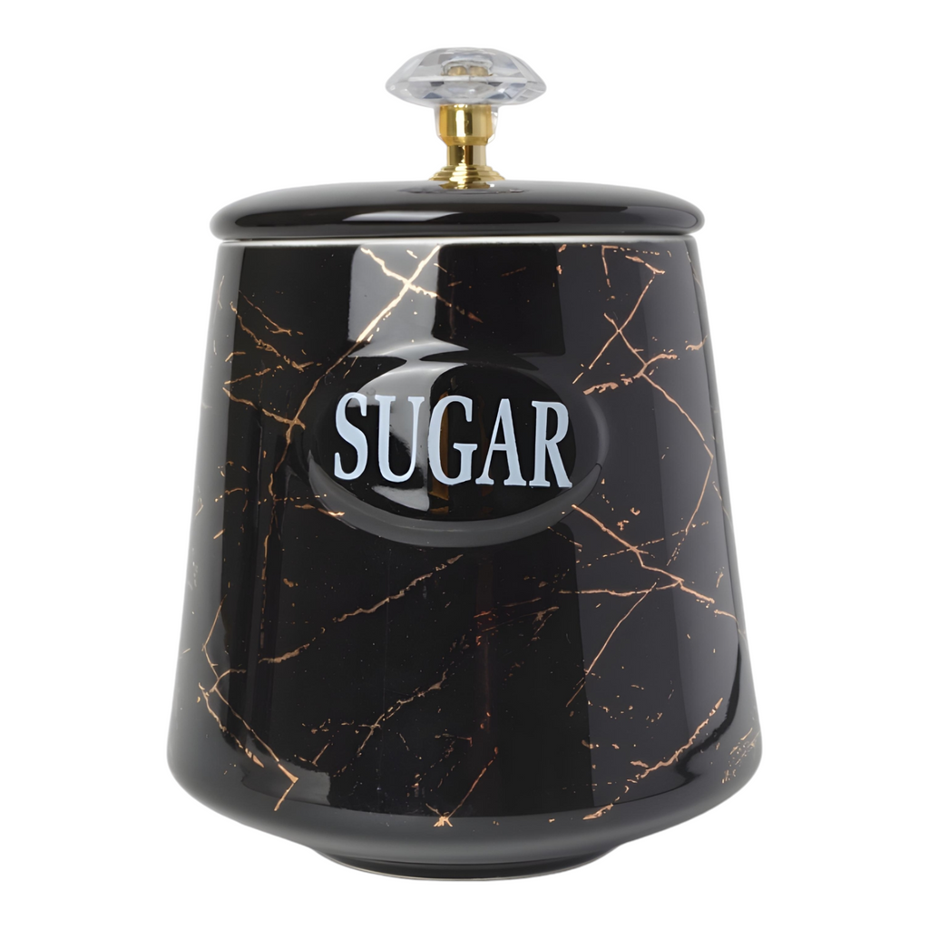 Set 3 Black & Gold Marble Design Ceramic Kitchen Canisters- Coffee Tea Sugar