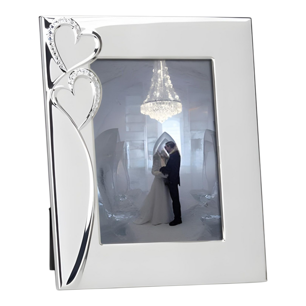 Silver Plated & Crystal Diamantes Double Hearts Photo Frame- 5"x7"