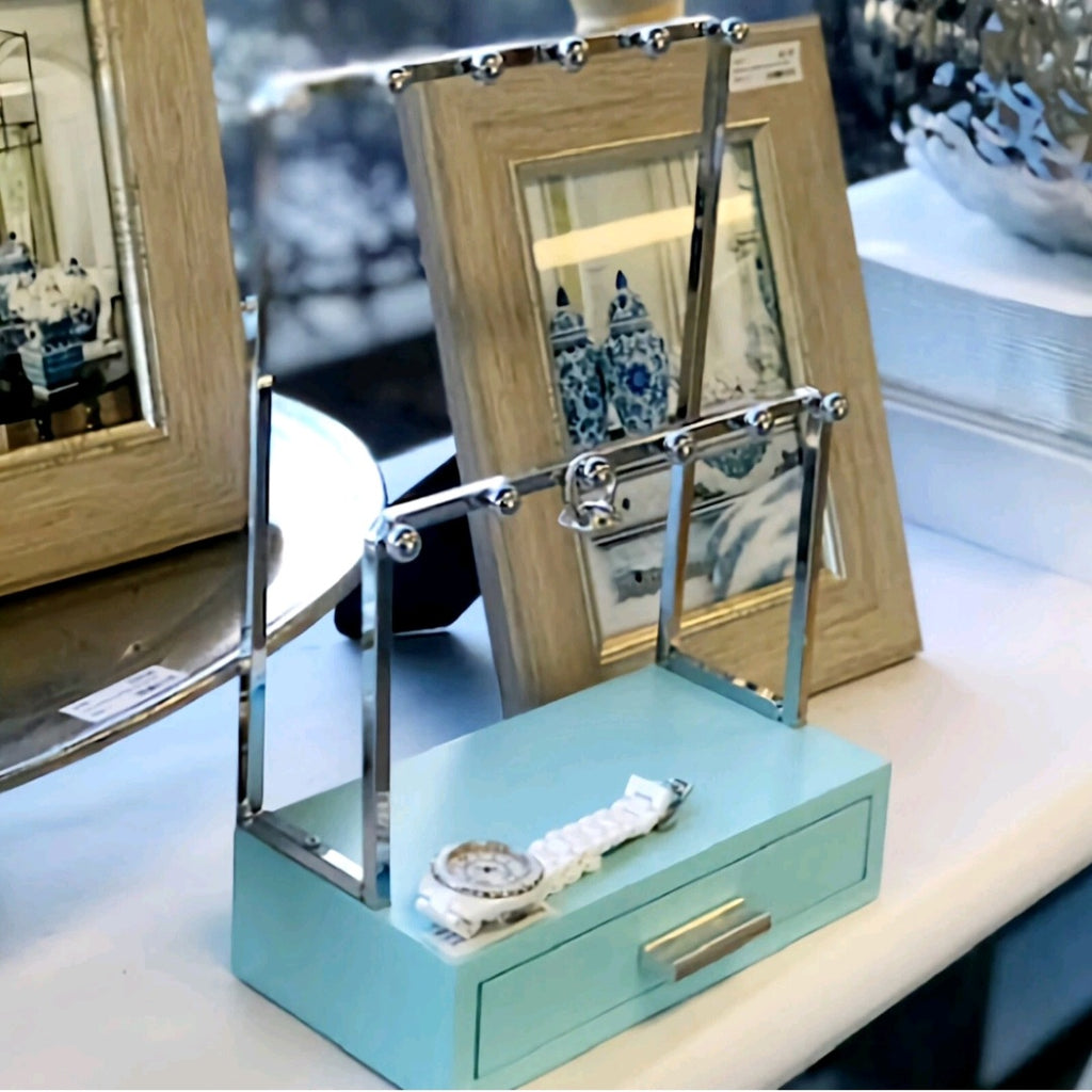Tiffany Blue & Silver Jewellery Stand Holder with Drawer