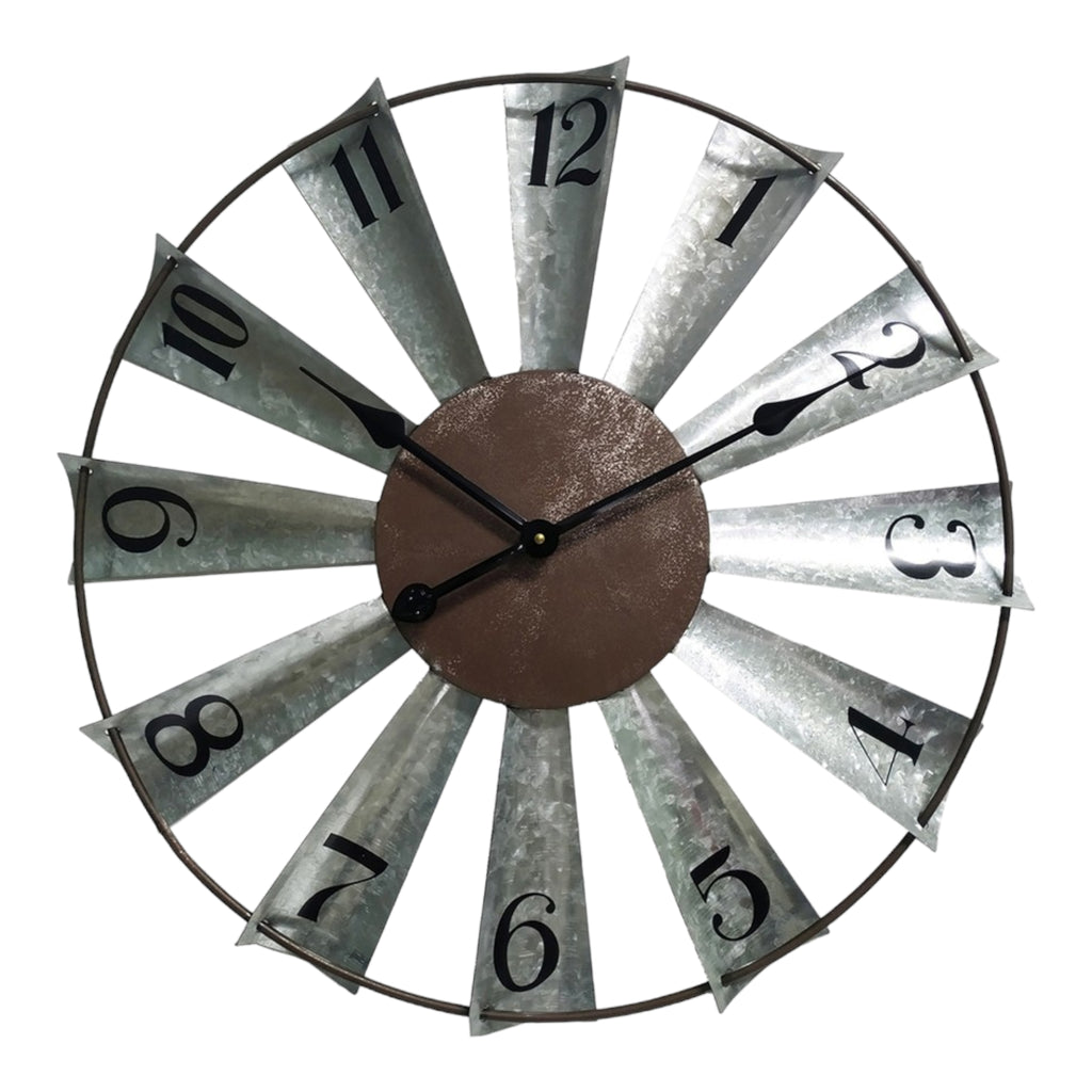 Large Galvanised Metal Windmill Wall Clock